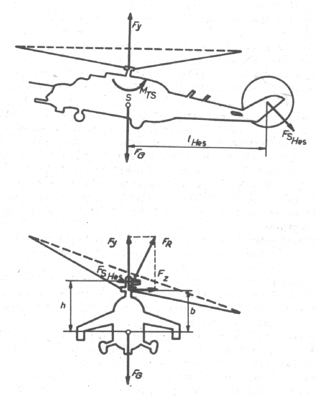 Bild 1/5 Kräfte und Momente bei der Standschwebe bei Windstille