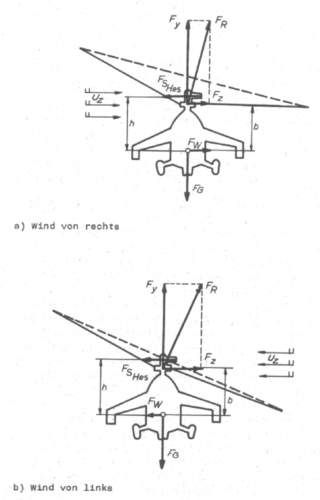 Kräfte und Momente in der Standschwebe bei Seitenwind