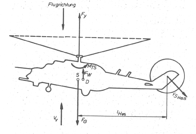 Bild 1/13 Kräfte und Momente beim vertikalen Sinkflug